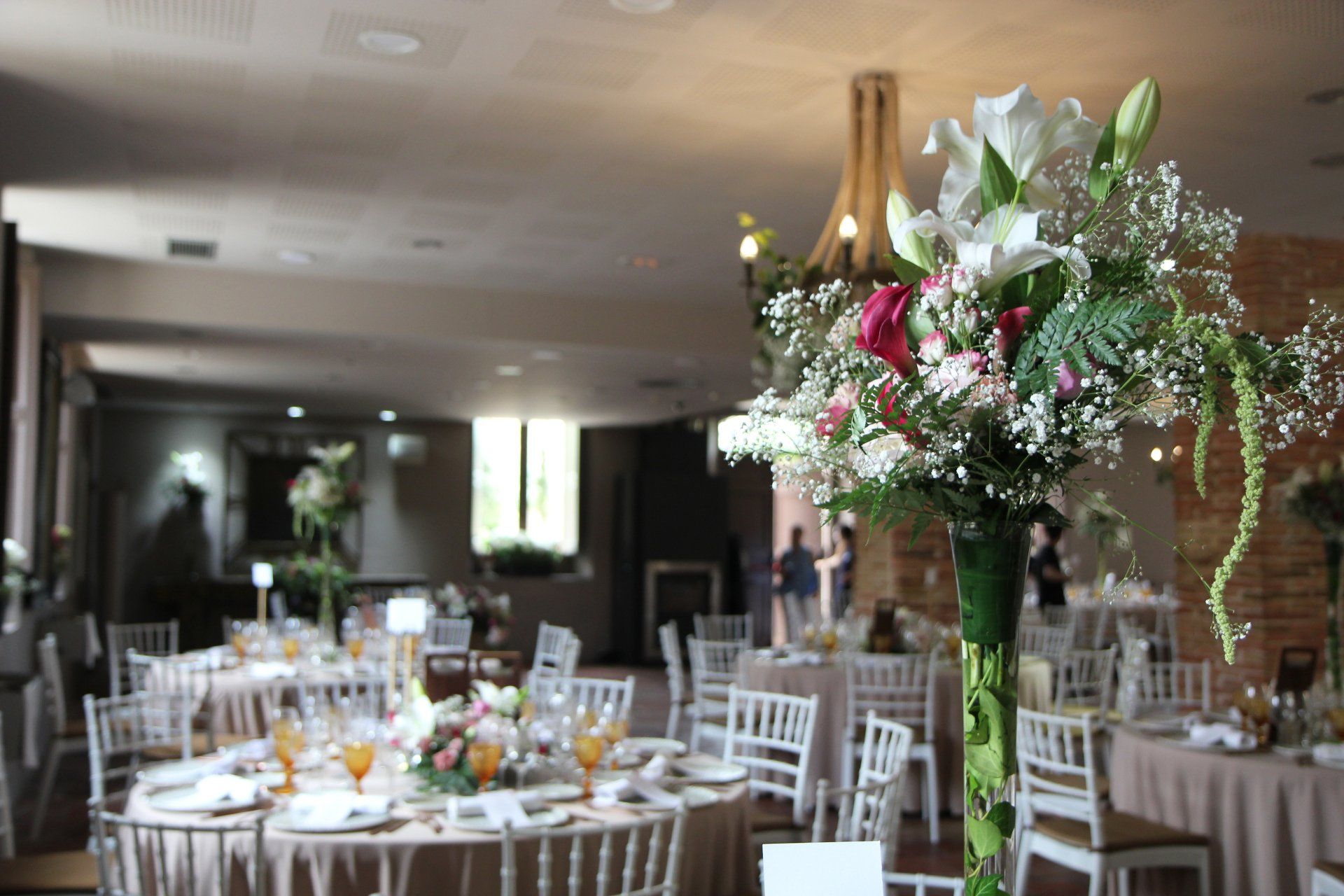 Una parte muy ligada a la boda como es el banquete es un lugar donde las flores también juegan un gran papel. Decorar mesas y estancias donde se celebra el banquete de bodas es algo muy tradicional y hace del entorno un lugar más acogedor y alegre.