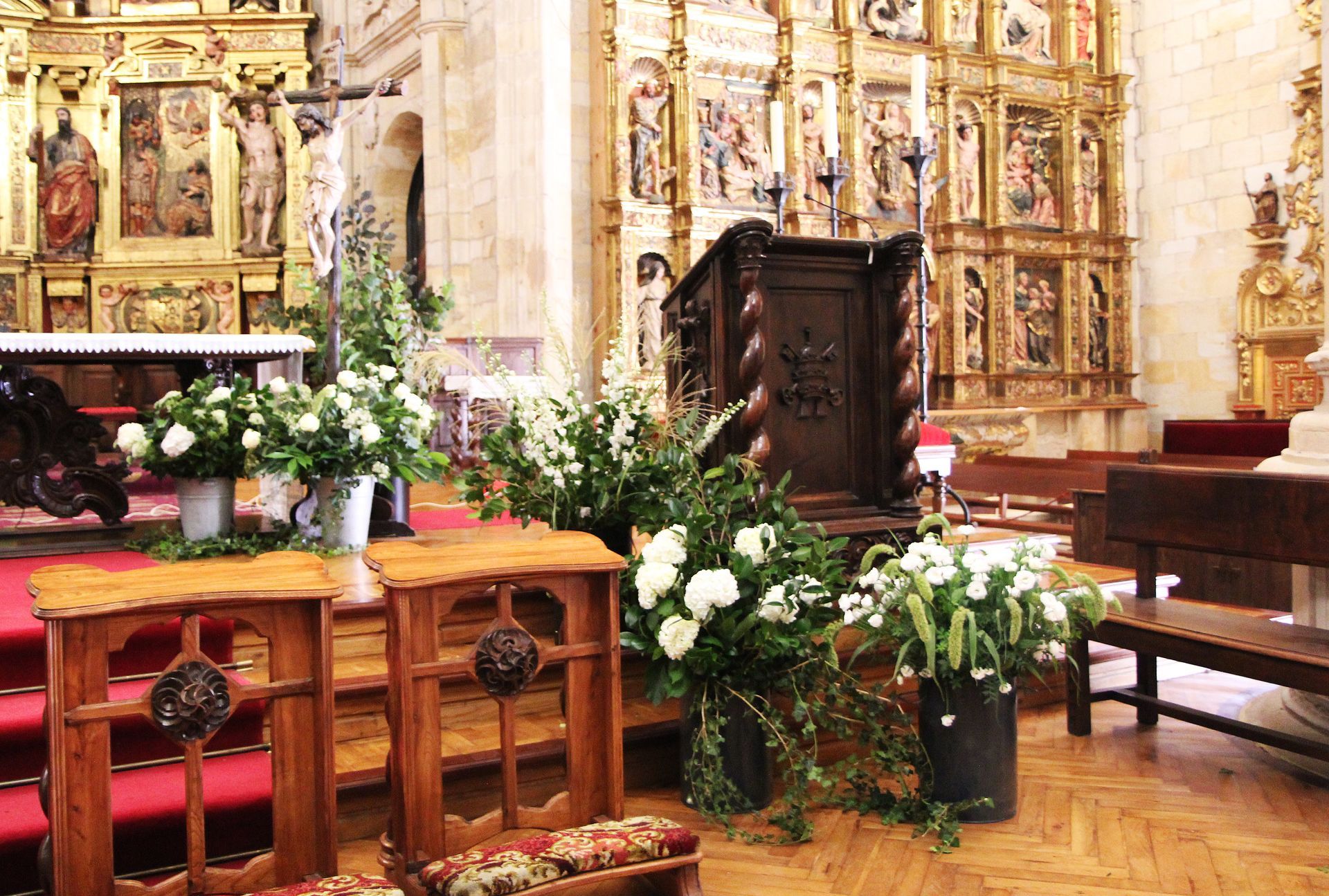 Adorno del altar mediante cubos con distintas composiciones para crear sensación de volumen y resaltar los elementos claves de la ceremonia,